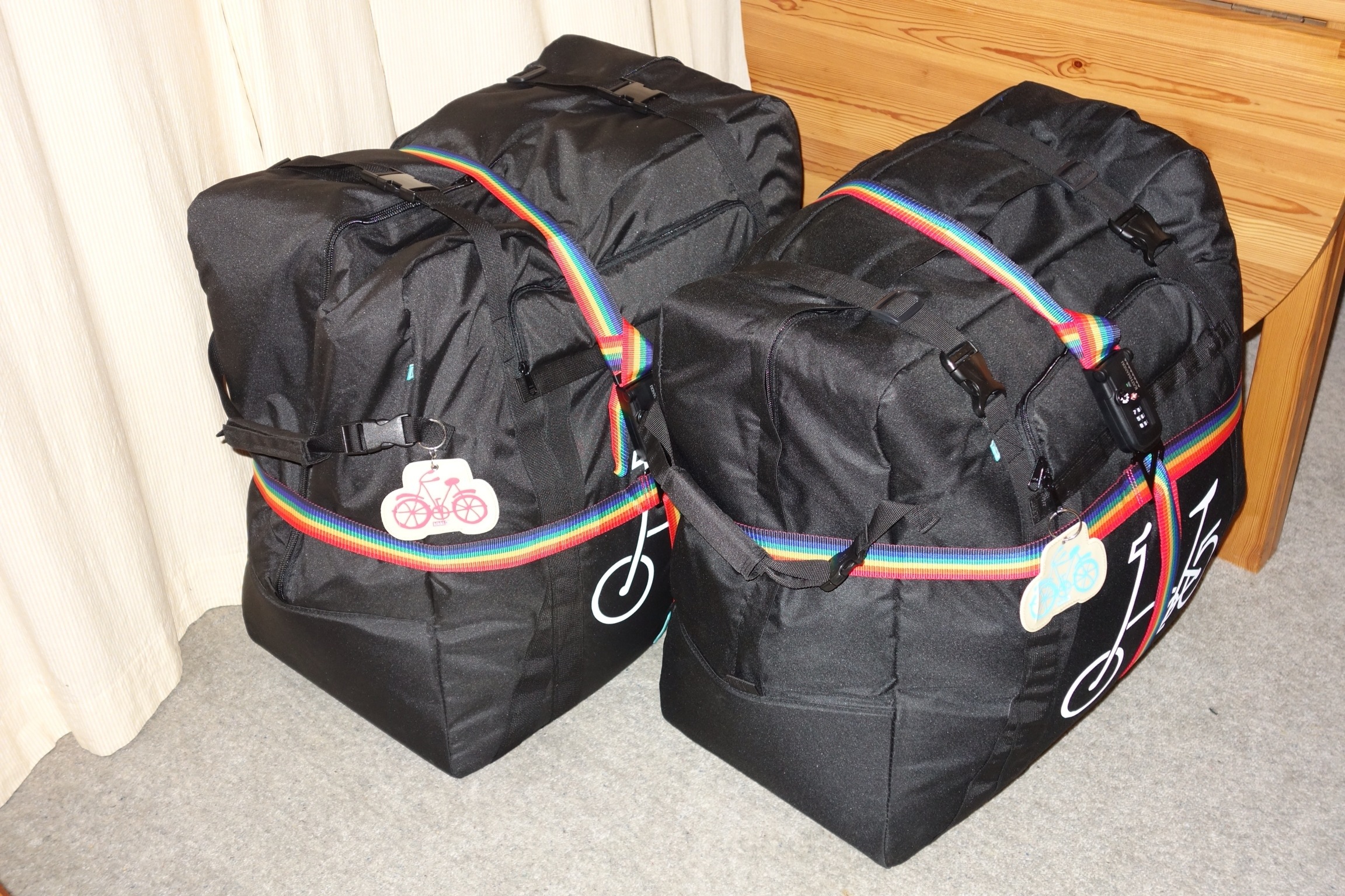 So, this week saw everything come together & I was rather relieved that there are no last-minute dramas or changes of plan! My slightly smaller Vincita bag has Ralph (wearing a Brompton cover), the small Axiom on-bike luggage (containing various spares & bits), 2 pair of shoes, a lightweight suit-bag (containing clothes – definitely no suit!) & a couple of small stuff-sacks. Robinson (also wearing a Brompton cover) in the other Vincita has a Brompton C bag (with frame & bag separated) & a myriad of packing cells!? (It probably wouldn’t be safe to describe what my wife is packing – but it seems to have fitted?) Onto the scales & they’re in the range of 26-27 kgs – fitting within the checked-luggage allowances for our planned flights. Oh, & the bags comply with the 158cm dimensioning restrictions! Rather weighty & bulky but then it’s not just the BWC we’re heading for!