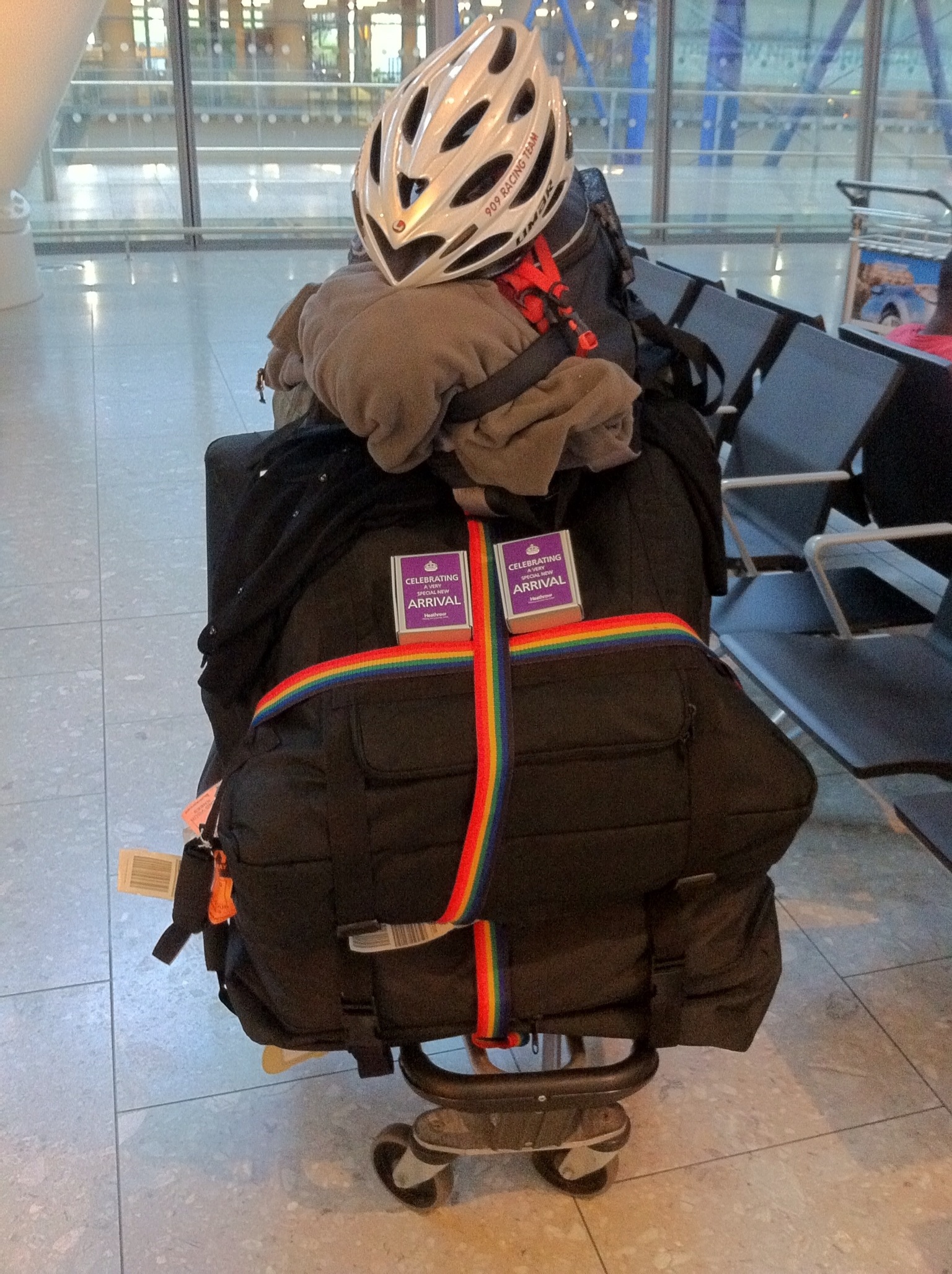 This travel lark is rather hard work. Getting into London at 5am after a 13hour BA flight (on which I inherited a broken headphone socket & a super-hard seat squab) was the start of a wearying day. Heathrow added a little amusement with a gift “Celebrating a very special new arrival” but we weren’t fooled; it was for Will & Kate’s new arrival, not ours.