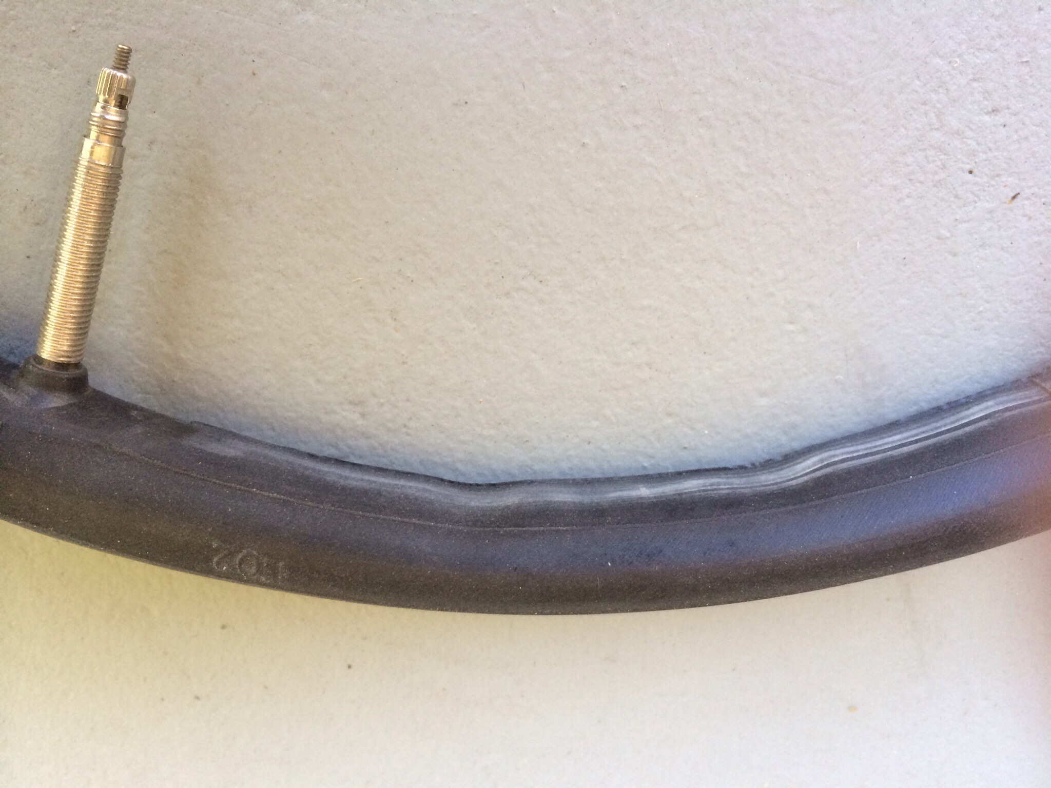 I assume the spoke heads make quite a firm contact with the tube & that deflations/inflations/”air top-ups” cause a lot flexing & chafing at the pressure points? What can be done? Well, this could be my chance to justify new Brompton double-wall rims? (or maybe not just yet!) “Do nothing” is one option where I could ignore it & await another unexpected deflation? Regular inspections aren’t really the answer, although very close tube examination may highlight any advanced chafing? (being hopeful aren’t I?)