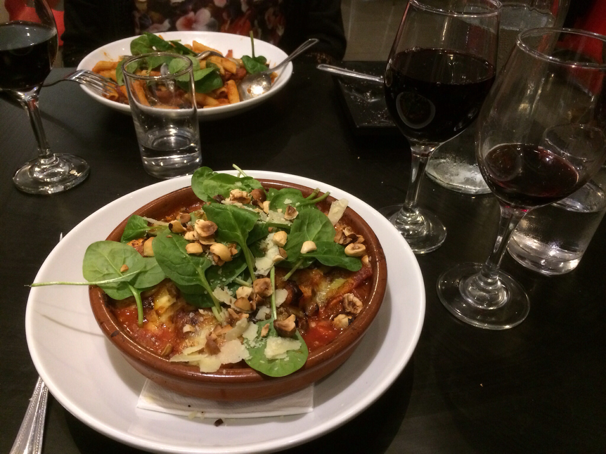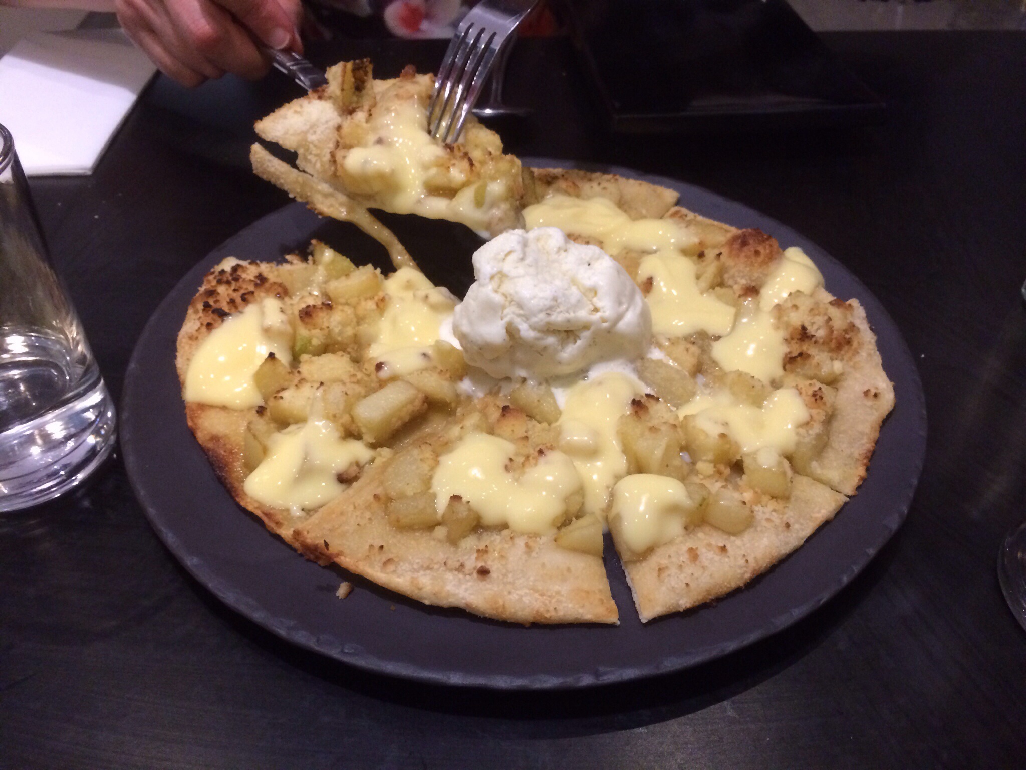Lots of eating places around (aside from the gourmet cook that operates out of the Tardis?) but returning to the local Pizza Kitchen was a must. This time our Mains were pasta – but we shared a pizza dessert.