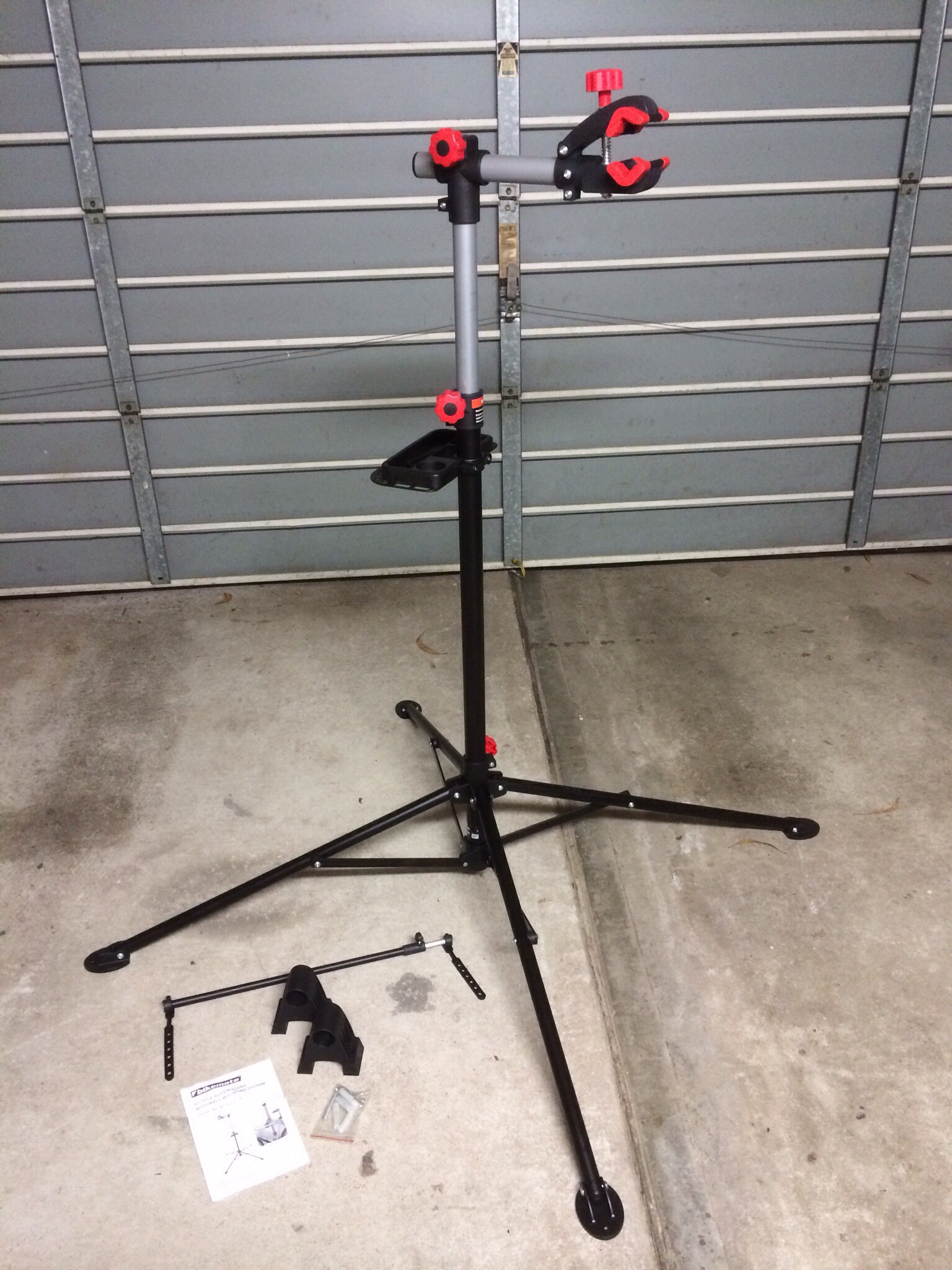 It was meant to be, it was fate! After many years making do with cobbled bike work stands & support systems, it was pointed out to me (while in the shopping centre) that Aldi was having one of their bike stuff sales – & that a work stand was included! I’d never been enthused to spend lots of money on a super-duper work stand but maybe this one would do? Finished my coffee & trotted along & sure enough; a cheap work stand & probably good enough? After all, it did say, “Fits all bikes” on the box?