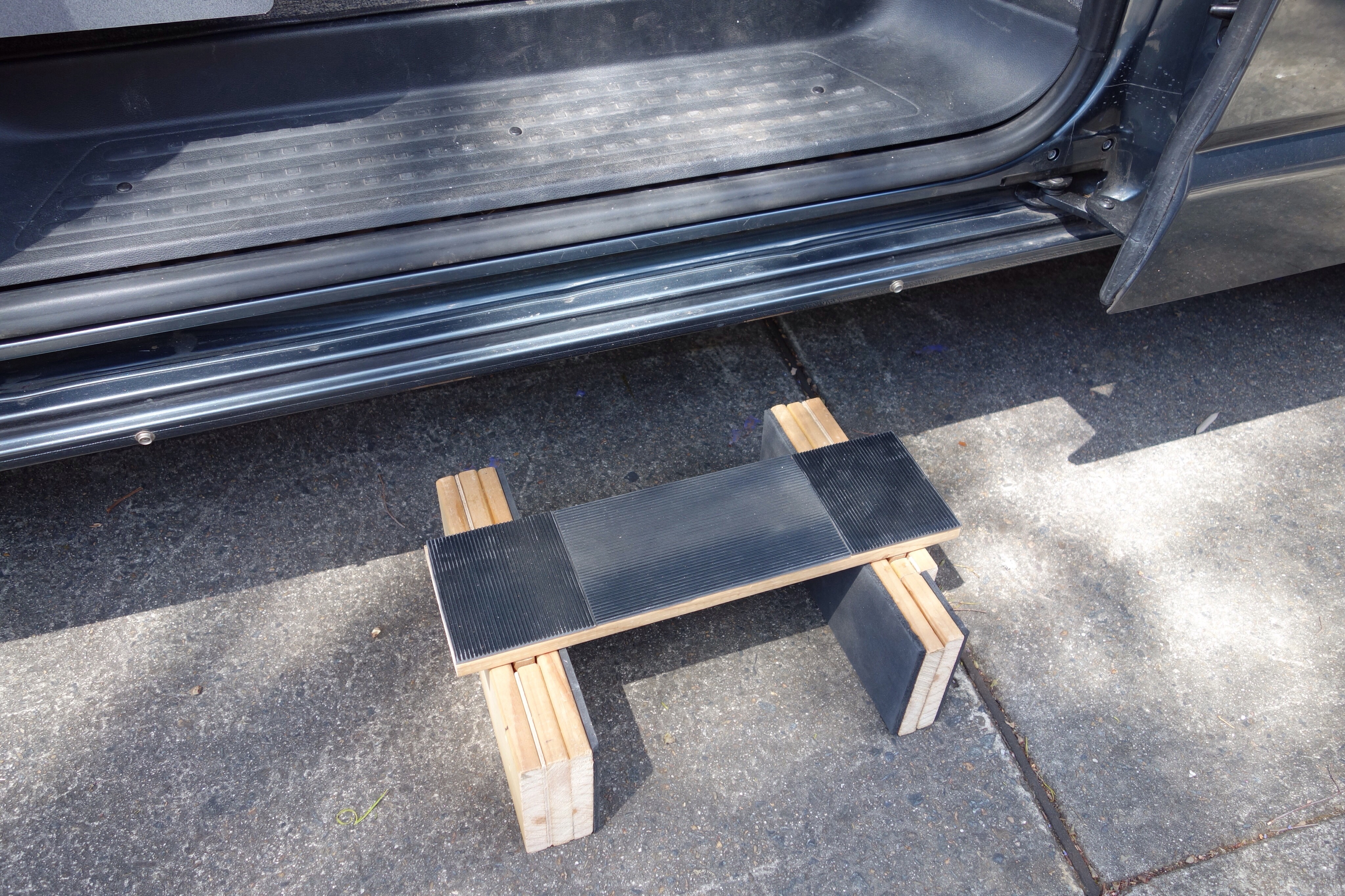 Enough of trying to explain all this in words, let’s see some piccies of the work stand in a multi-use way – step, mobile stand & support cradle (& when not in use can be stacked on the side door sill beside the sliding door).