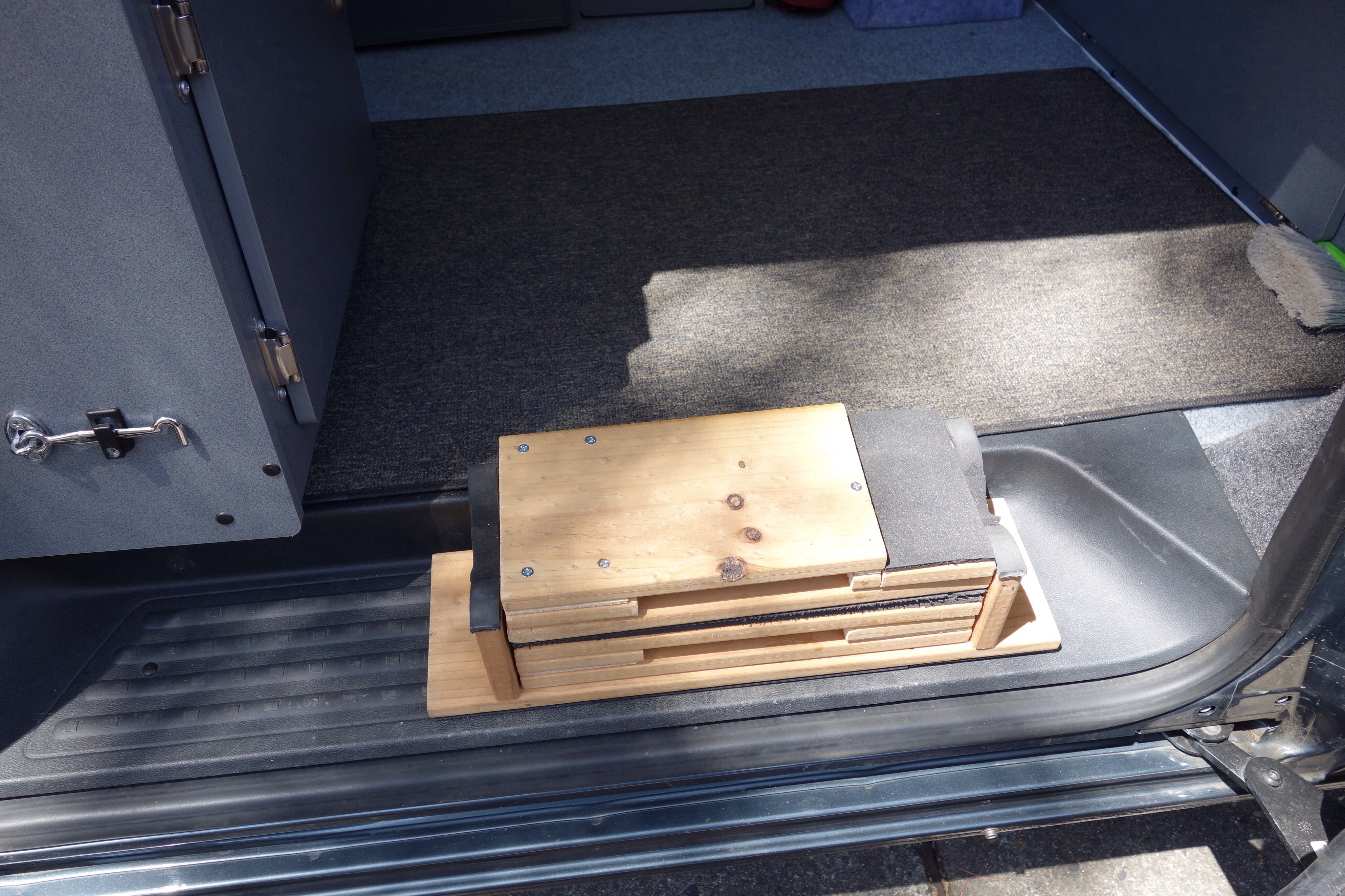The trip with “the Mum” has highlighted what we seem to take for granted; that the step into the Tardis is a fairly tall one. Perhaps it was time to get ourselves a little portable step? Looking around I couldn’t see anything that fills our usual criteria of items readily integrating into the van & ideally having dual roles? (Our Tardis is deceptively spacious but can’t match its namesake!)