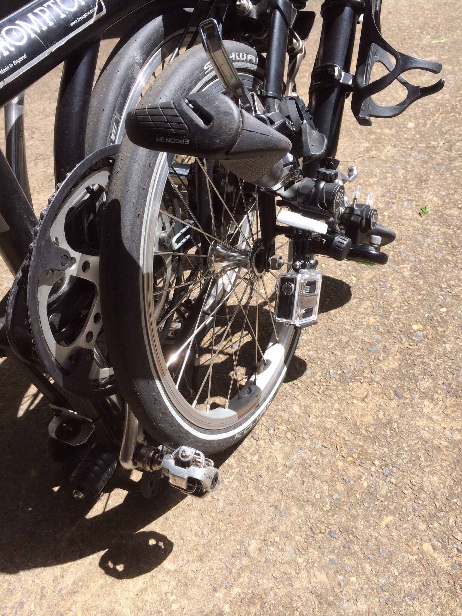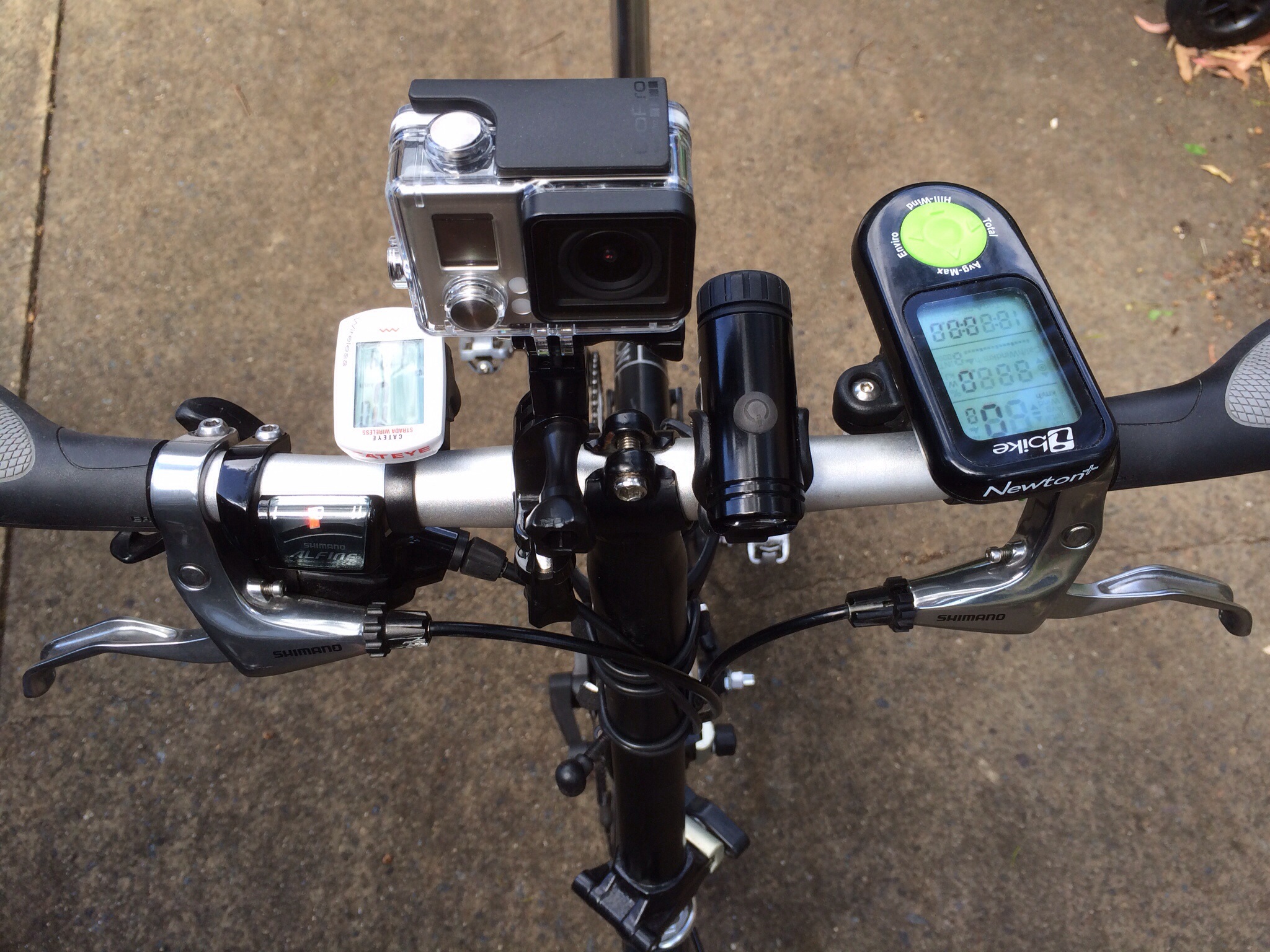 For my last 2013 blog post (along with my best wishes to you for the new year) I wanted to show the rather cluttered cockpit of Ralph, my Alfine 11-speed Brompton. The handlebars have become somewhat crowded over time with an assortment of old & new gadgets. Now, Santa has apparently thought that my blog could benefit from including some videos & so I’ve gained a GoPro camera (the Hero3 White unit).