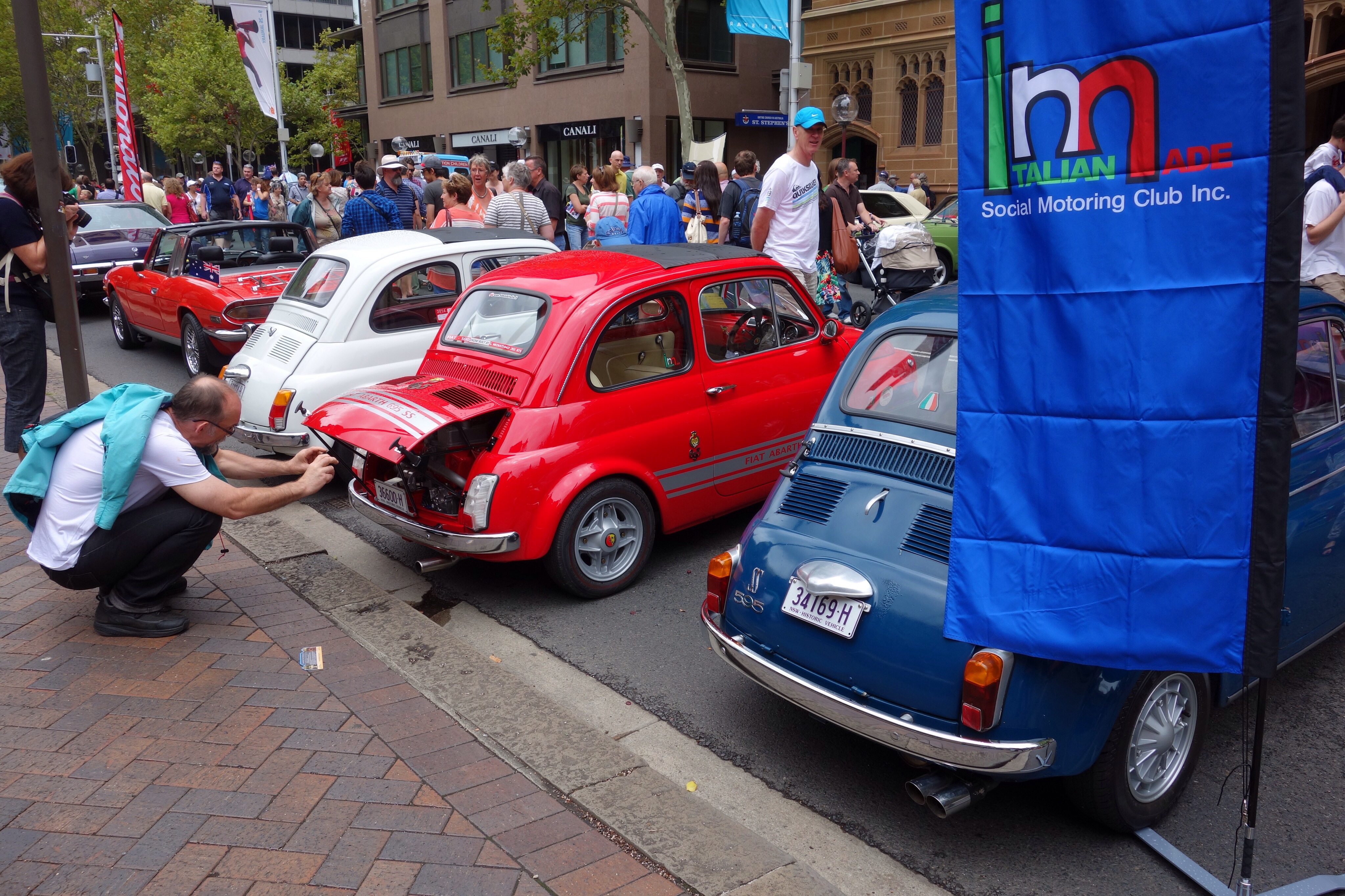 At the Australia Day CARnivale & admiring a Fiat Abarth & an immaculate engine-bay, I thought a side-on snap was the best I could do – without thinking that “shooting blind” into the compartment (as this visitor was probably doing) may have been worthwhile?!