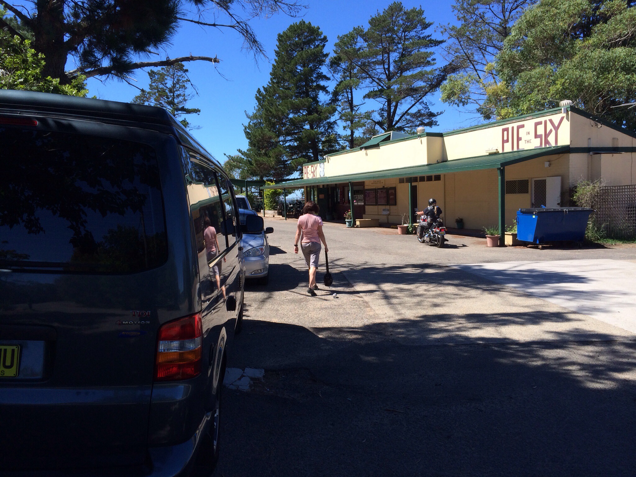 Pulling out from the caravan park, we stopped for a coffee at the local surf club & nestled our little/big Tardis amongst some fellow travellers.