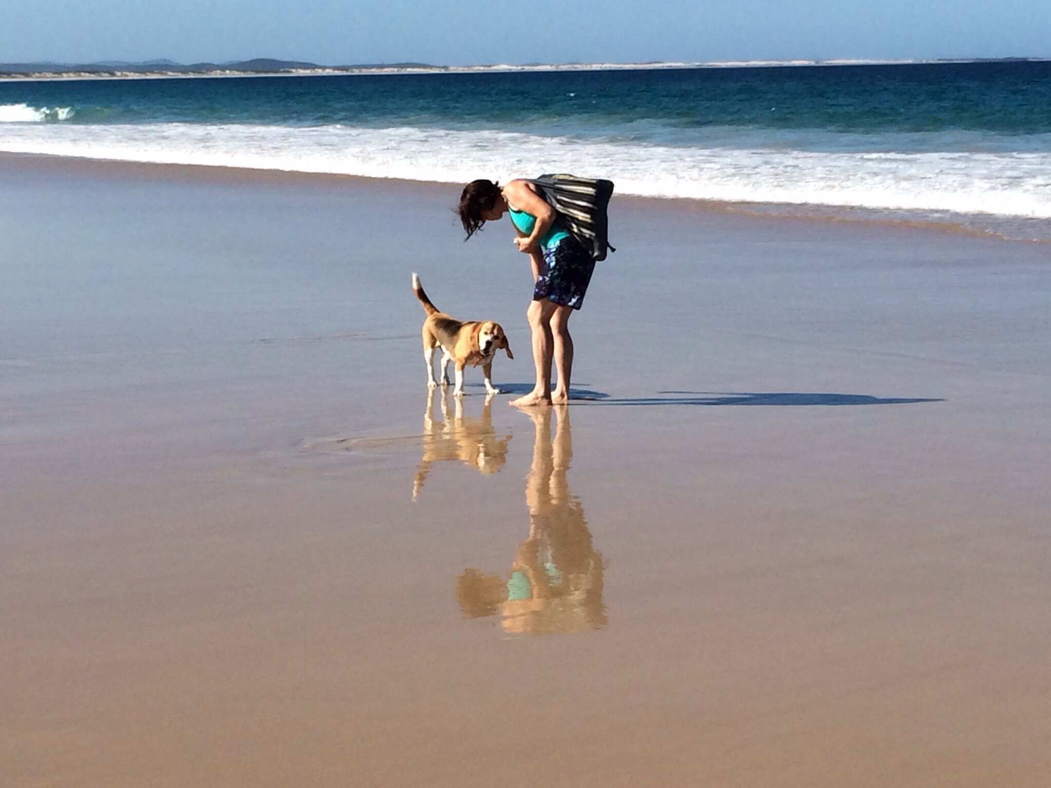 Next day saw us out on the Bromptons for some cruising around the coastal area (no pics I’m sorry, but there just might be a video soon?). The afternoon activity just had to be the beach & Mrs Aussie managed to fit in an ocean dip & a beach walk – as well as chatting to a local resident.