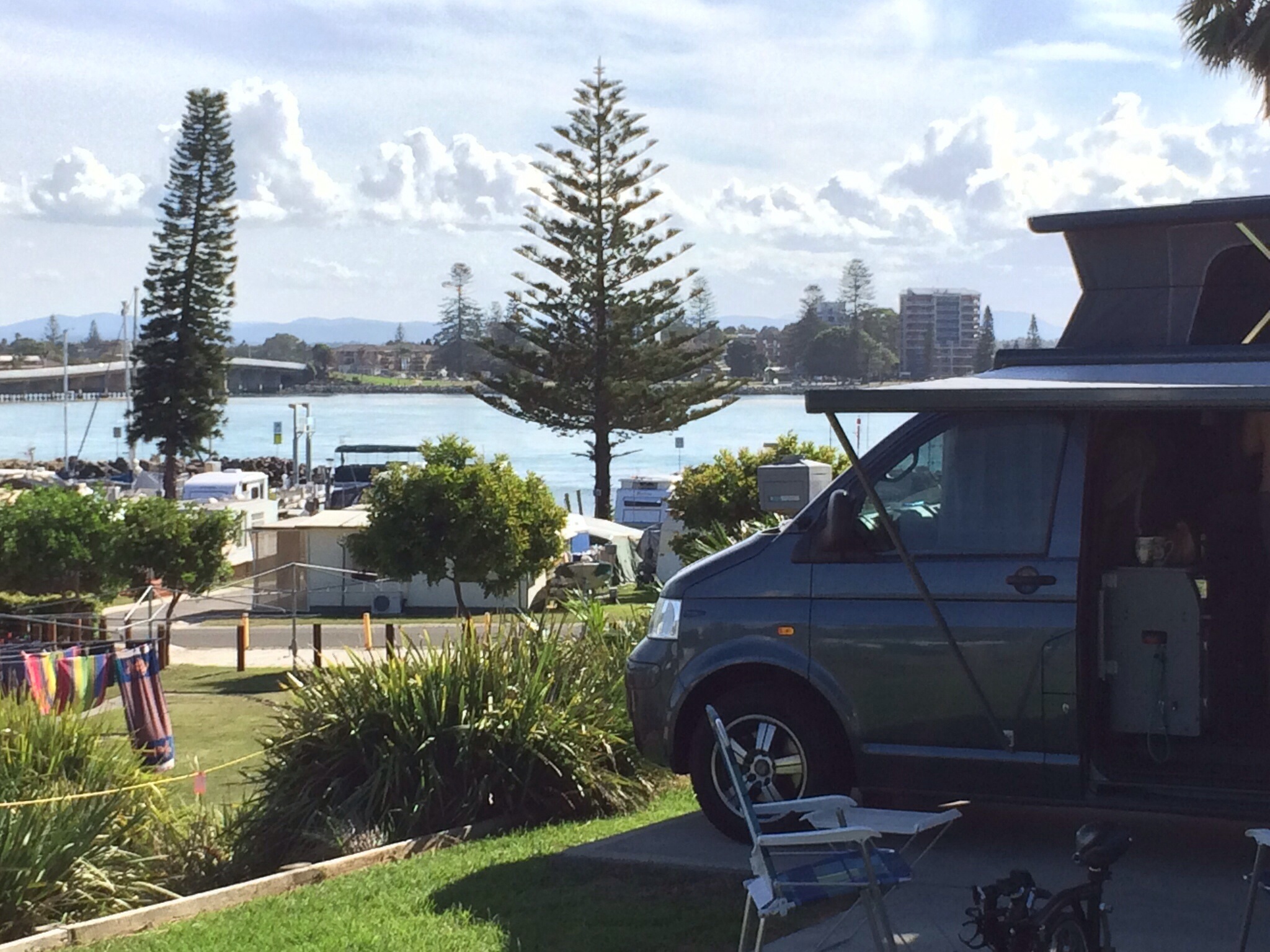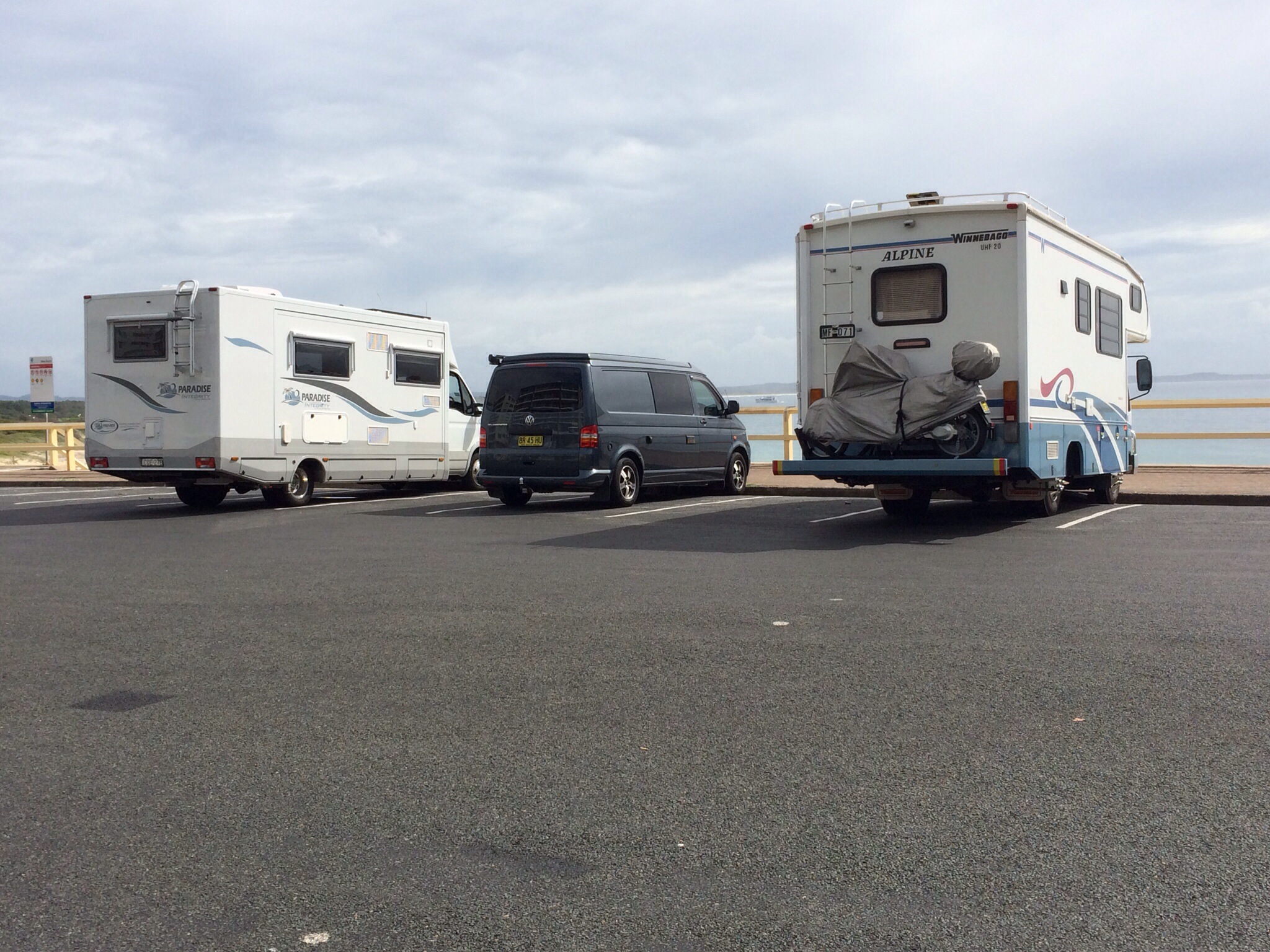 Hawks Nest turned out to be the first nights caravan park, just beside the ocean beach.