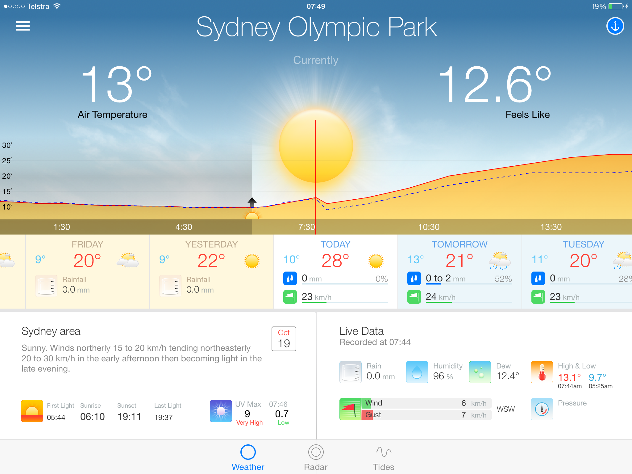 “Lovely day for a ride, let’s get down to Sydney Olympic Park”. Maximum temperature of 28° & should be about 22° for our little ride?