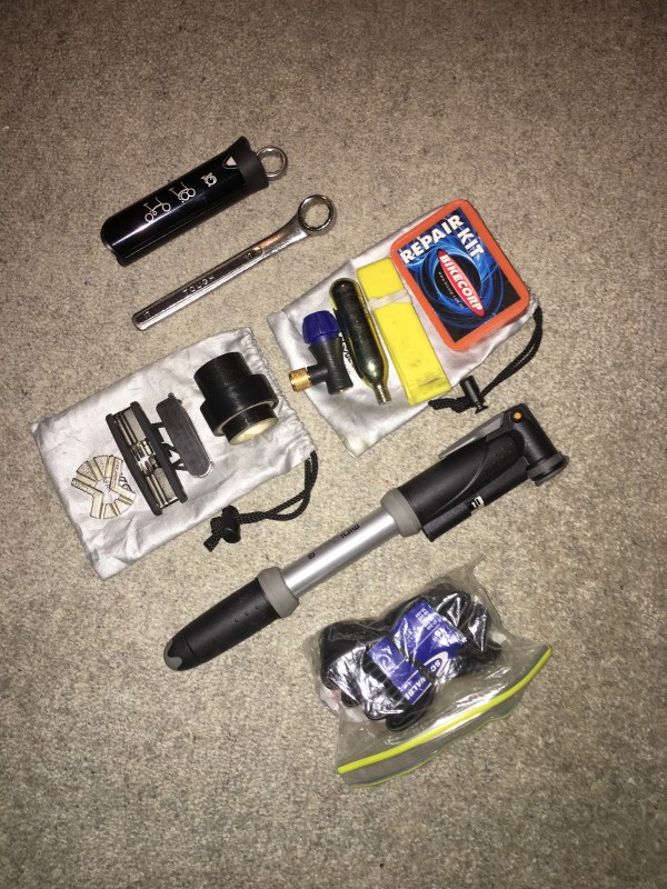 Along with my Brompton toolkit (stored on-board), here’s Ralph-e’s luggage bag set of tools.