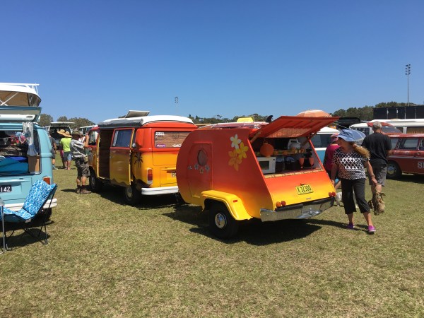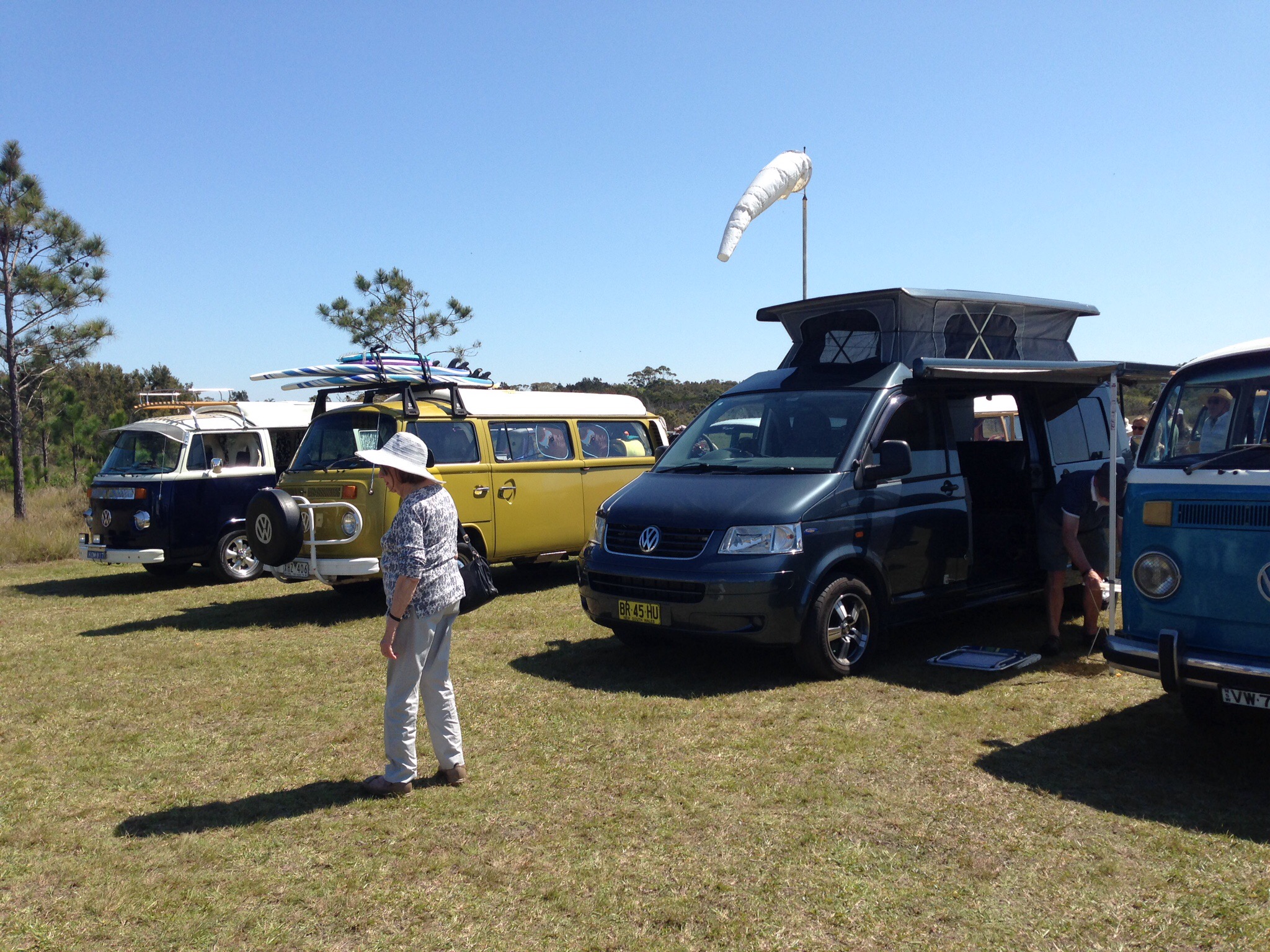Our VW Campervan took us away again in October, traveling to the Old Bar Beach Festival (read VW Kombi Festival). All sorts of events overall but Saturday’s main show was the Kombi motorcade through town. About 150 VWs formed up on the local airstrip & then drove through town & out to the highway before returning. Taking about 45 minutes to pass by, the spectator numbers were amazing. About 10 modern VWs like ours seemed out of place but it was worth it to see how the older models were received. Sunday was a static display & about 250 VWs turned up, providing hours of ogling every type of VW Type 2 imaginable; Transporters, Kombis, Buses, Dual-cabs & with customisations galore.(Yes, Peregrine & Ralph-e were onboard the Tardis – & had quite a few folding demos.)