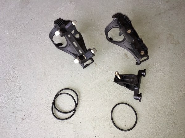 Recipe: take one Monkii system, remove the strap & cut off the wings & tail of the cage. Drill & countersink the cage spine & attach to a standard cage with some screws & nuts. When the Monkii stem block is being mounted, hook an O-ring under the block. When installing the new “combo cage” to the bike, hook the top of the cage under the O-ring & stretch it up so that the Monkii portion of the cage can be connected to the Monkii stem block.