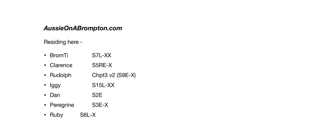 Aside from “a little tinkering/tweaking” of the Bromptons since the last dim, distant post, the family has recently grown with the addition of Dan, an all-steel framed 2speed (just by using up frame bits from the parts bin).